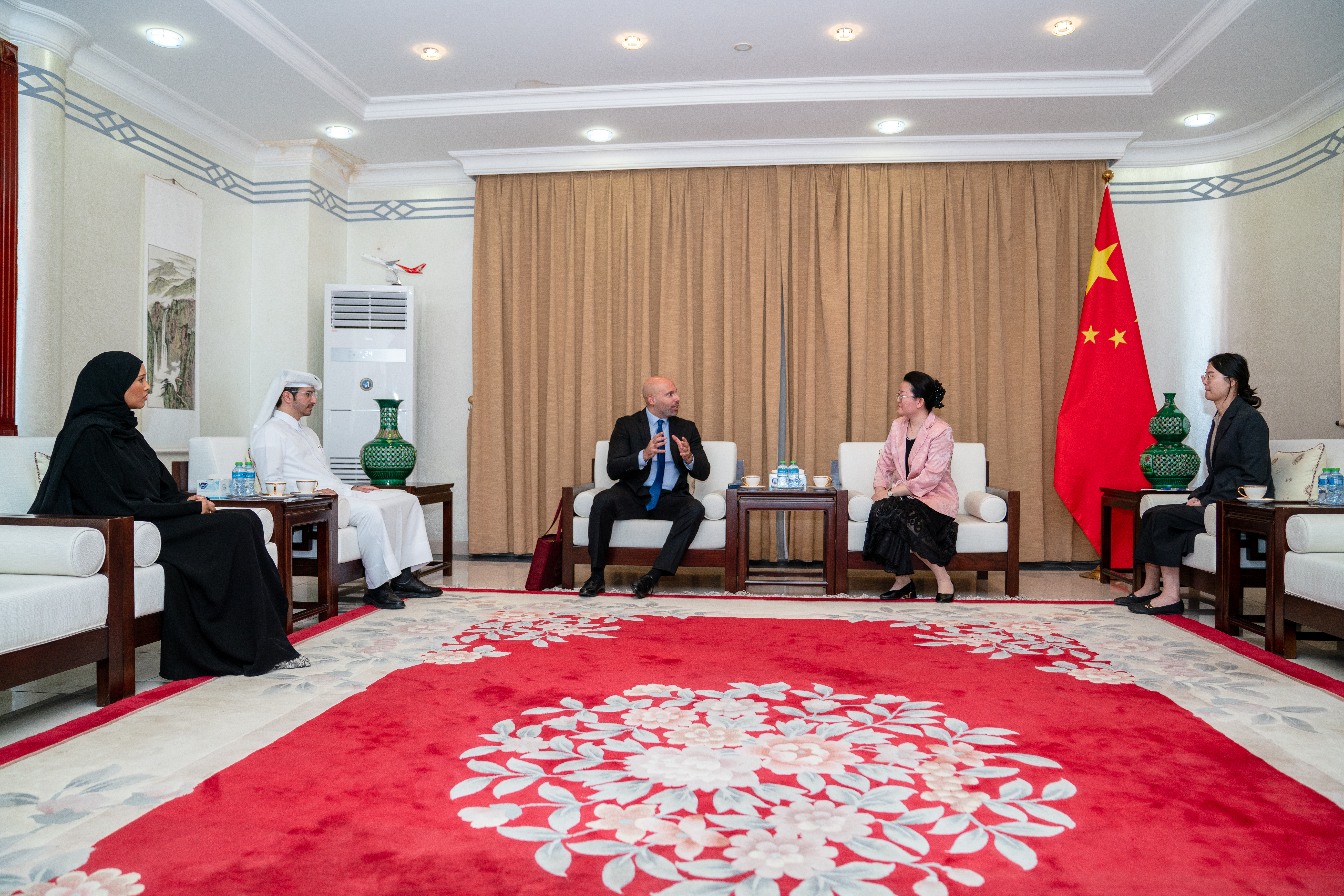 احتفاءً باختيار اللغة الصينية ضمن لغات الدورة الثانية عشرة لعام 2026، وفي إطار الاستعداد لجولة ثقافية كبرى إلى الصين، قام وفد من جائزة الشيخ حمد للترجمة والتفاهم الدولي، يضم المدير التنفيذي للجائزة، الأستاذ لبيب النحاس، والمسؤول الإعلامي، الأستاذ عبدالرحمن المري، بالإضافة إلى أعضاء الفريق الإعلامي، السيدة ليلى محمد والسيد محمد الدميري، بزيارة إلى سفارة جمهورية الصين الشعبية في الدوحة، حيث التقى بالقائمة بالأعمال، السيدة وانغ ينغ عن.